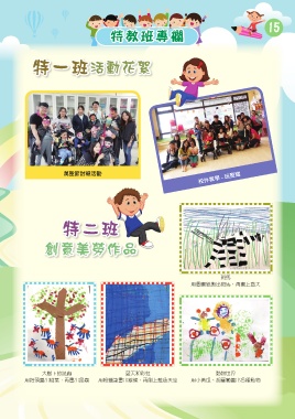 15 特教班專欄 特一班 活動花絮 萬聖節討糖活動 校外教學 - 玩聚窩 特二班 創意美勞作品 斑馬 用圖畫紙撕出斑馬,再畫上藍天 大樹下的昆蟲 藍天和彩虹 動物世界 用指頭蓋出樹葉,再畫出昆蟲 用粉蠟筆畫出線條,再刷上藍色天空 用小黃瓜、胡蘿蔔蓋出各種動物